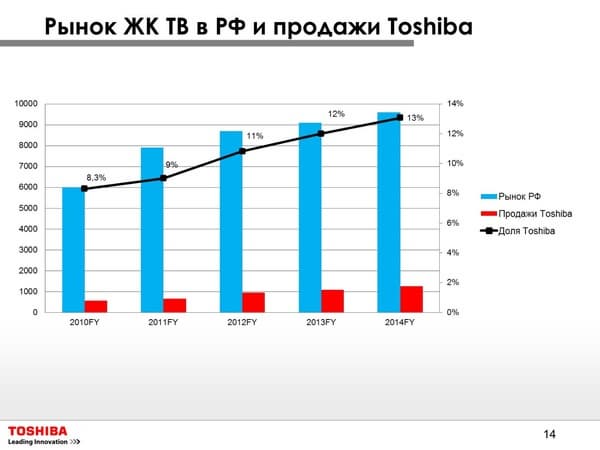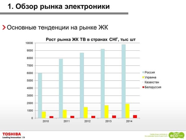Теперь переходим к месту Toshiba на российском рынке телевизоров.