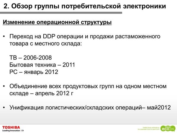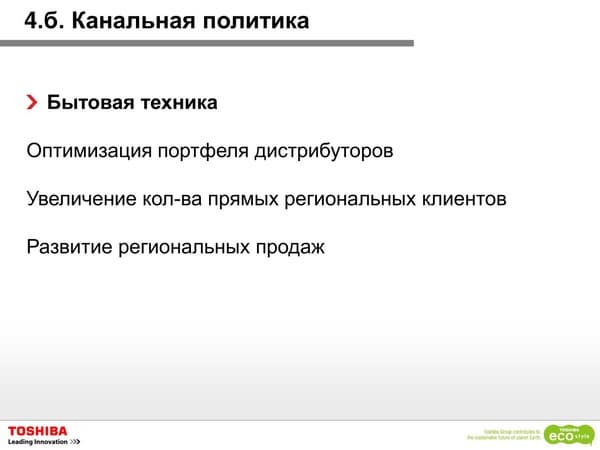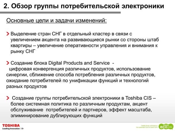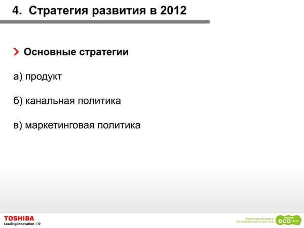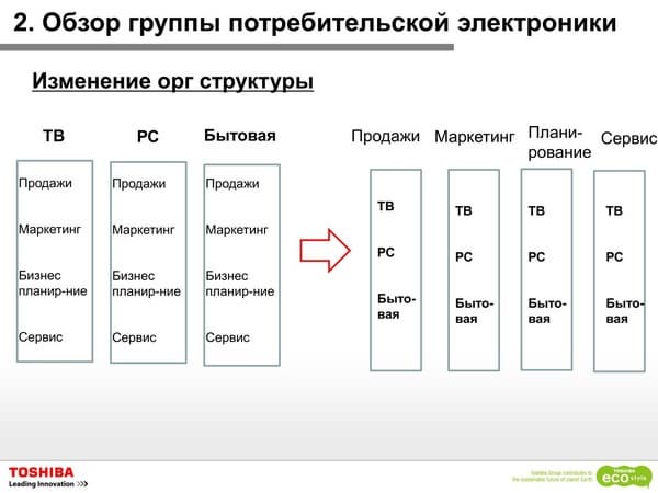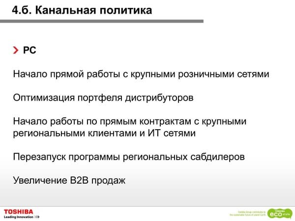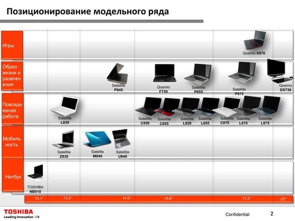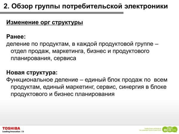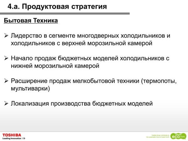 Теперь посмотрим подробнее на стратегию Toshiba в разных группах продуктов.