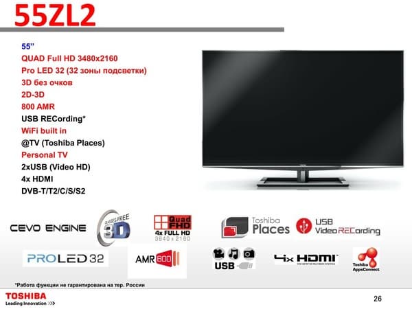 Здесь новинок представлено было очень много, так что этот раздел мы постараемся сократить. Но для начала посмотрим на основные технологии, использующиеся в телевизорах Toshiba 2012 года.
