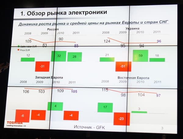 В принципе, рынок ноутбуков в России, по мнению Toshiba, также должен показывать очень серьезные темпы роста. В других странах они, согласно прогнозу, очень скромные, а украинский рынок и вовсе должен стоять на месте.