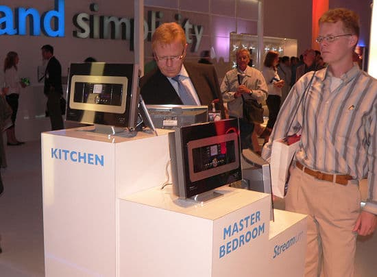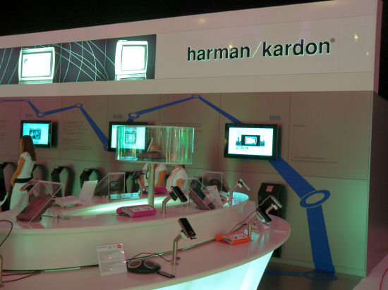 Далее был ряд павильонов, посвященных аудиотехнике. В основном представлены именитые европейские марки. Попадаются вполне интересные и оригинальные новинки. Например, у Harman Kardon целый стенд заполнен продукцией для мобильных телефонов — дополнительные колонки, полноценные аудиосистемы и прочее. Так и цифровой телефон скоро станет цифровым центром для бытовой техники.