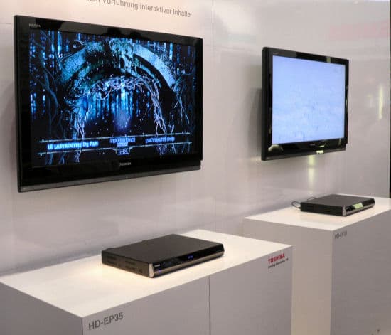 Кроме того, Toshiba выпустила новое поколение бытовых плееров HD-Video, работающих в стандарте HD-DVD. Речь идет не только о дорогих полнофункциональных моделях, но и о моделях начального уровня, которые, тем не менее, позволяют в полной мере насладиться преимуществами видео высокого разрешения — даже модель начального уровня, HD-EP30, поддерживает стандарт 1080p. Более продвинутый плеер, HD-EP35, отличается поддержкой самых современных стандартов многоканального звука 7.1.