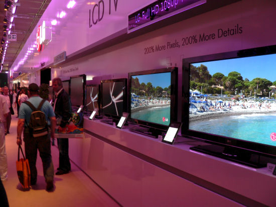 Первое, что привлекло внимание — залежи ЖК-телевизоров. Они были везде — стояли горками, пирамидами, рядами, штабелями. Торговых марок было огромное количество, а внешне, или, по крайней мере, стилистически, телевизоры отличались не очень сильно. Европейские компании проявляют больше изобретательности в том, что касается внешней привлекательности и стиля, но и цены на такую продукцию должны быть значительно выше. Фотографировать телевизоры отдельно надоело после первого павильона.