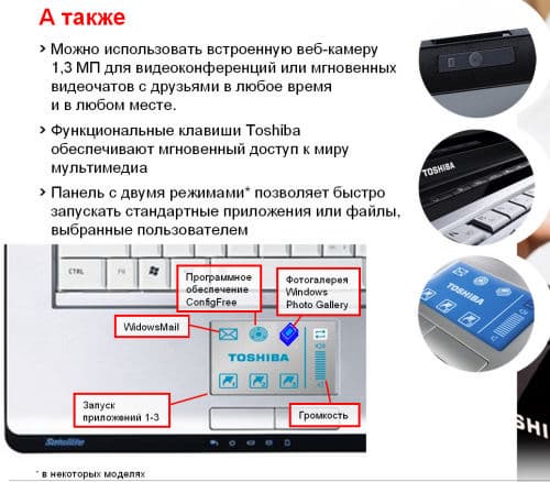Все новые модели имеют дополнительные мультимедийные клавиши, а также встроенный автономный плеер, который позволяет проигрывать аудио- и видеоконтент без запуска основной системы.