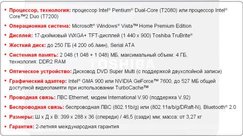 В новой модели используется экран с фирменной технологией Toshiba Trubrite. Он поставляется со специальным глянцевым покрытием, которое субъективно повышает яркость и контрастность экрана, а также с более мощными лампами подсветки.