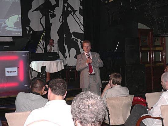 Началось мероприятие с небольшой джазовой композиции, после чего представители Toshiba, Игорь Снытко и Олег Корчагин, приступили собственно к презентации новых продуктов: