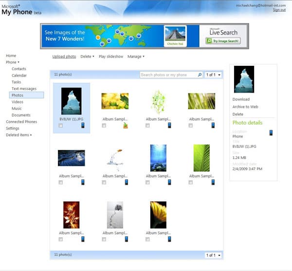 Второй сервис Microsoft, ориентированный на покупателей Windows phone — это My Phone, сетевое хранилище данных, оптимизированное работы с Windows Phone и умеющее синхронизироваться как с вашим телефоном, так и с компьютерам. Например, помощью My Phone вы можете опубликовать только что сделанную фотографию в социальной сети, а также получить к ней доступ с другого телефона или компьютера. По сути, перед нами аналог сервиса Apple MobileMe, хорошо знакомого многим обладателям iPhone и Mac.
