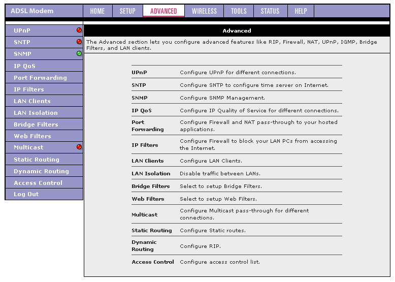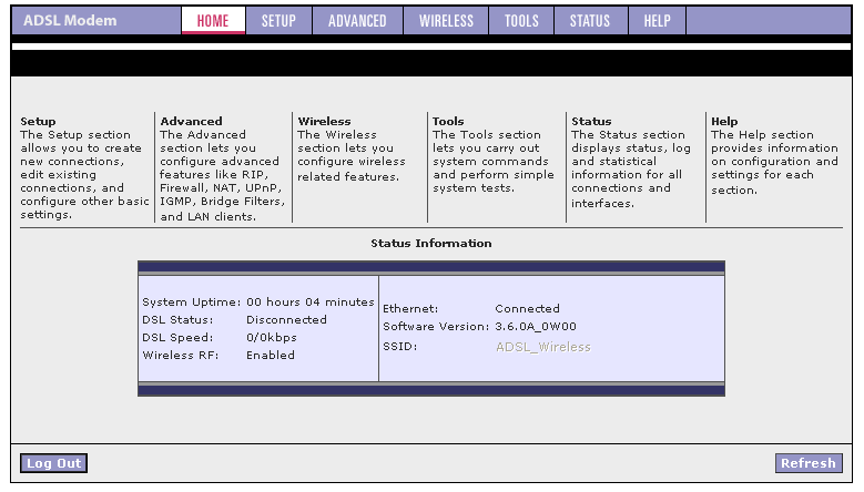Функциональные возможности: ADSL роутер со встроенной точкой доступа стандарта IEEE 802.11g, 4-хпортовый коммутатор.