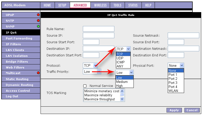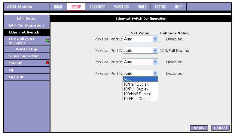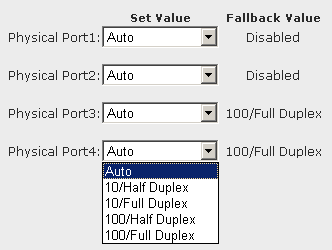 Роутер позволяет задать различные режимы работы каждого LAN-порта
