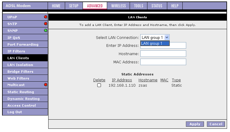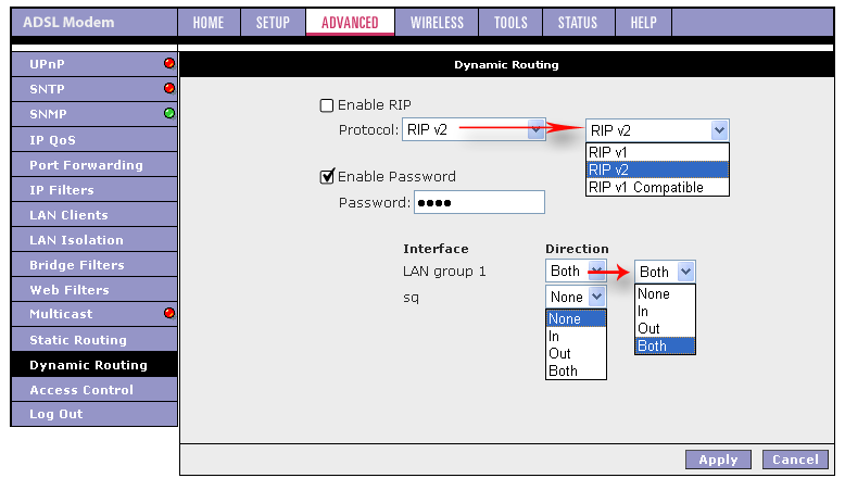- Возможность выбора типа соединения на каждом из 4-х LAN портов
