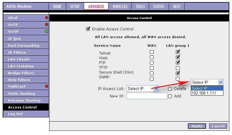 Во время тестирования безопасности было включено удаленное управление через WEB, SNMP, Telnet.