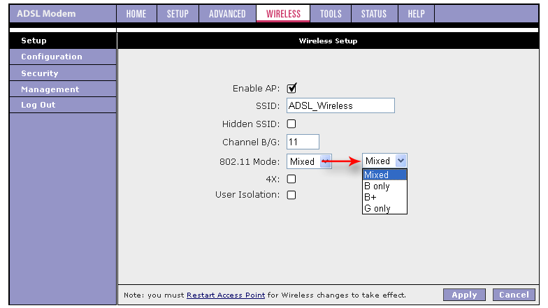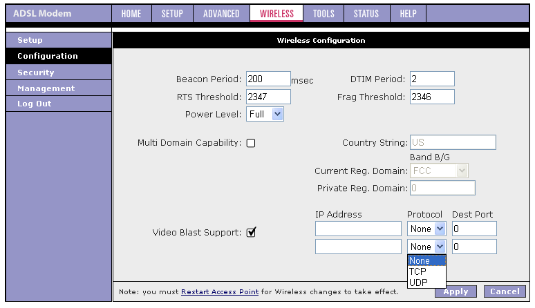 Настройки беспроводного сегмента ограничены использованием всего 11-ти каналов, вместо стандартных для европейского региона 13-ти.