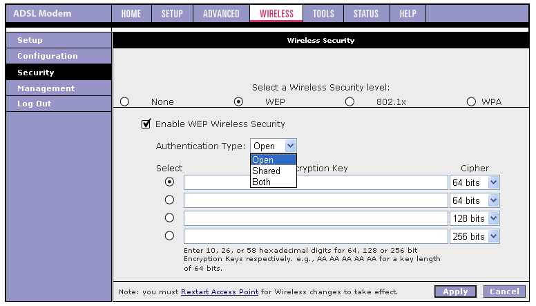 | WEP | 64/128/256 bit | |||