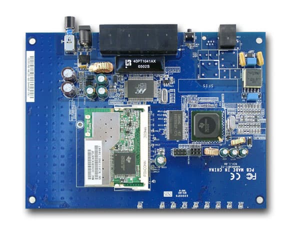 Беспроводная часть выполнена в виде отдельной mini-PCI платы, расположенной над основной платой устройства, на базе контроллера Texas Instruments TNETW1130. Трансивер, на базе которого выполнена радиочастотная часть роутера, скрыт под экраном, закрепленным на плате.