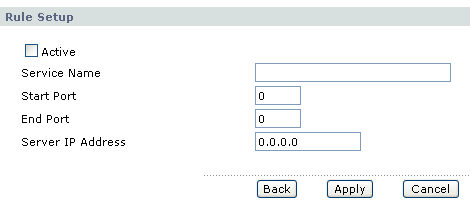 Как и многие другие маршрутизаторы ZyXEL, рассматриваемое устройство имеет возможность расширенной настройки сервиса NAT. Устройство позволяет выбрать один из двух типов: SUA Only (Single User) или Full Feature. В режиме SUA Only возможно создание виртуальных серверов с заданием диапазона портов и IP-адреса сервера, на который будет производиться переадресация.