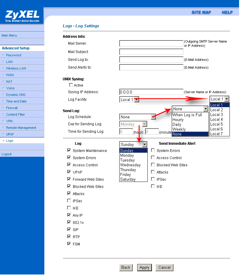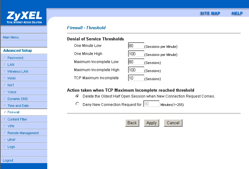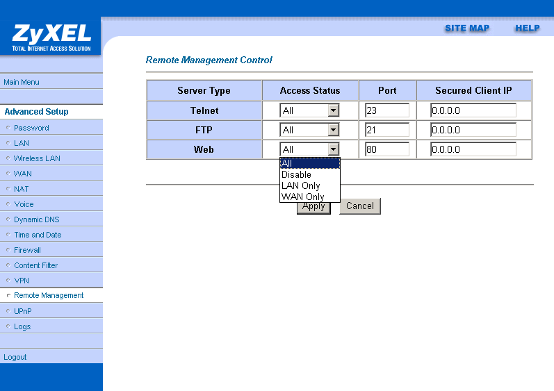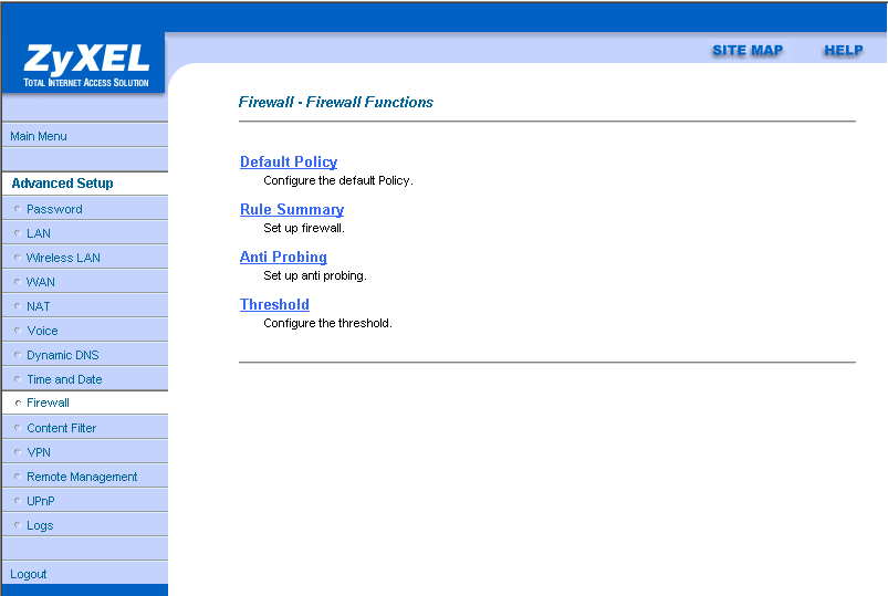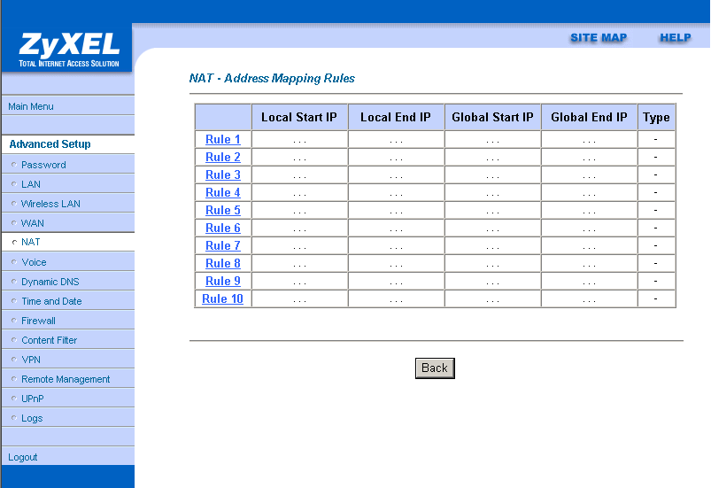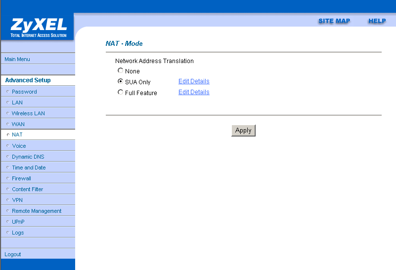 Рассматриваемый роутер позволяет достаточно подробно настроить сервис NAT (Network Address Translation — преобразование сетевых адресов). Возможно использование двух пунктов: "SUA Only" и "Full Feature"