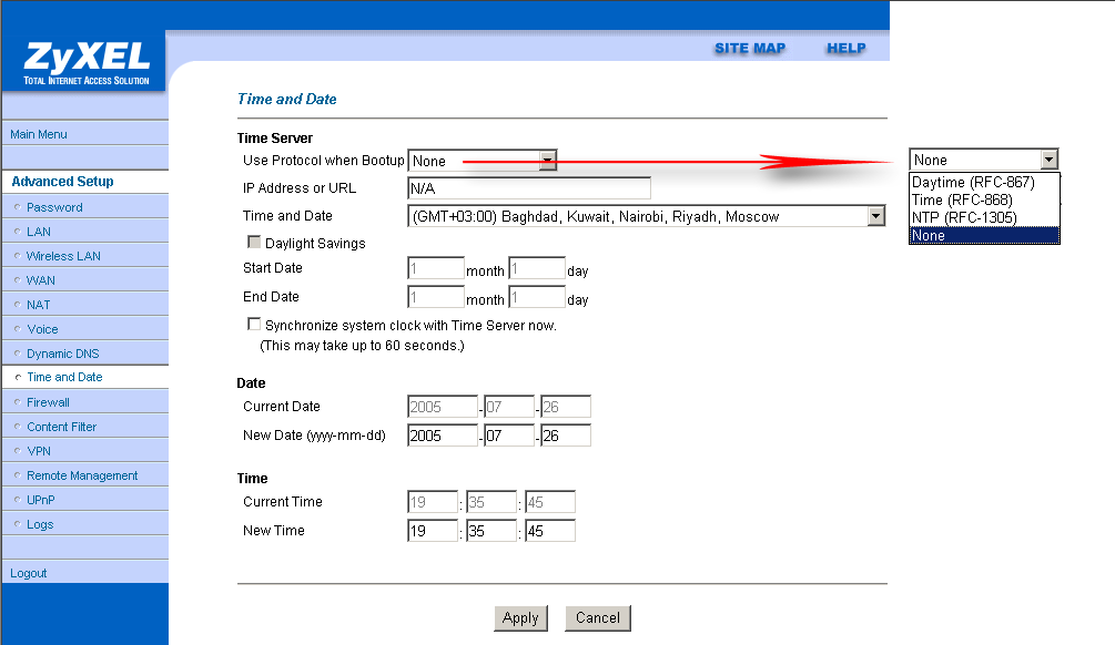 WEB-интерфейс роутера не позволяет изменять тип модуляции ADSL сигнала — изменить тип модуляции можно только настраивая роутер через Telnet или COM-порт.