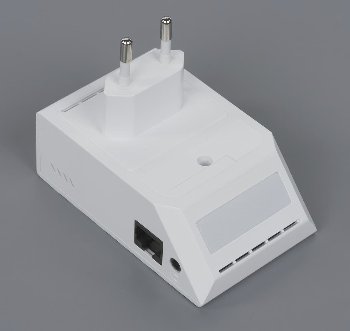 Как и прошлой модели, производитель по неизвестной причине использовал черные разъемы для расположенных справа сетевого порта и аудиовыхода. Они явно диссонируют с цветом корпуса. Для охлаждения начинки предусмотрены щели вентиляции. Заметим, что формат корпуса для непосредственной установки розетку на стене может мешать выбору оптимального места размещения с точки зрения обеспечения хорошей работы беспроводной связи.
