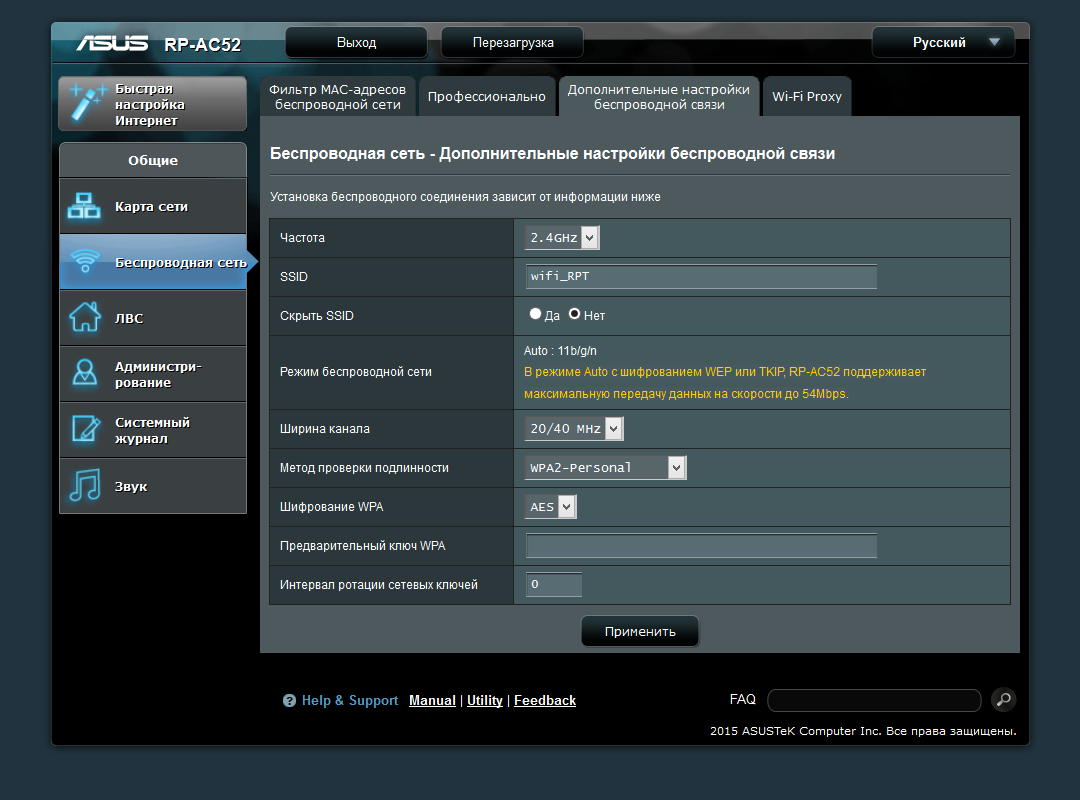 Причина этого — использование для диапазона 5 ГГц конфигурации с одной антенной, что снижает максимально возможную в нем скорость работы клиентов 802.11n до 150 Мбит/с по сравнению с 300 Мбит/с у Asus RP-N53. Возможное основание для такого решения, если не считать маркетинга, это желание сохранить относительно невысокую стоимость продукта. В любом случае, стоит отметить, что для городских условий поддержка устройством диапазона 5 ГГц будет очень полезной, поскольку часто в квартирах можно поймать пару десятков сетей на 2,4 ГГц, способных существенно снизить скорость работы вашей собственной сети.