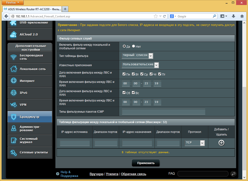 Кроме описанного выше набора, в роутере реализованы знакомые функции защиты, включая фильтр URL, фильтр ключевых слов и фильтр сетевых служб.