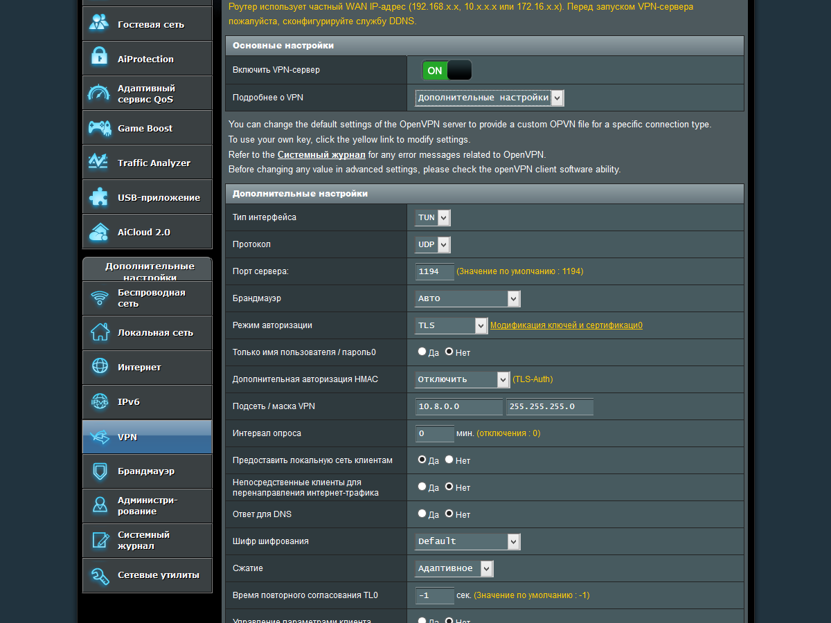 Мощный процессор роутера будет полезен, в частности, для реализации сервера и клиентов VPN. В первом случае поддерживаются протоколы PPTP и OpenVPN, а клиент умеет работать и с L2TP.