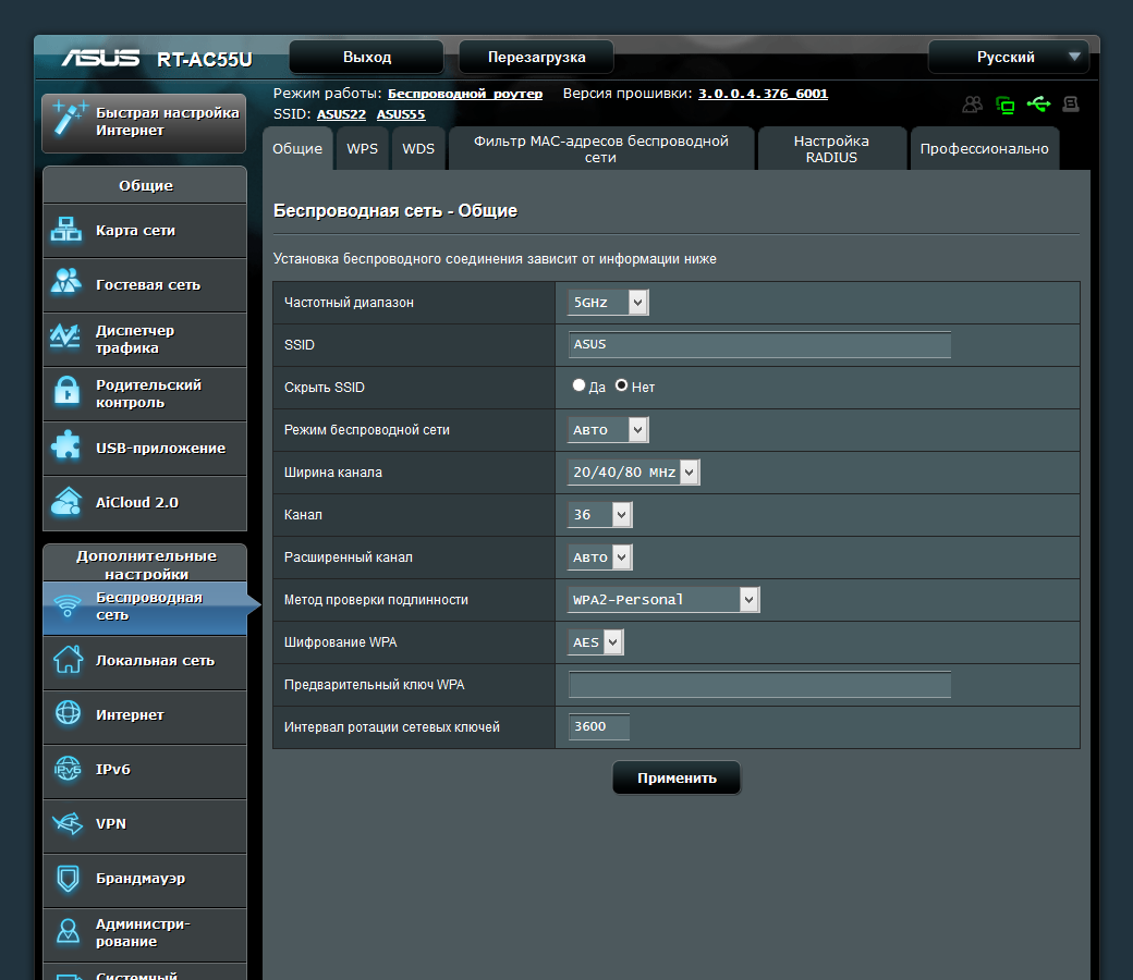 Как мы уже говорили ранее, данный производитель, как и некоторые другие, использует для своих роутеров унифицированную прошивку AsusWRT, так что и веб-интерфейс, и набор функций у них отличаются мало. Можно говорить о том, что если вы меняете одну модель Asus на другую, то даже не заметите отличий в интерфейсе.