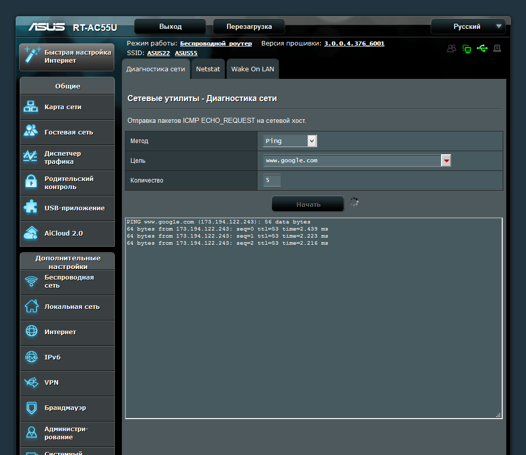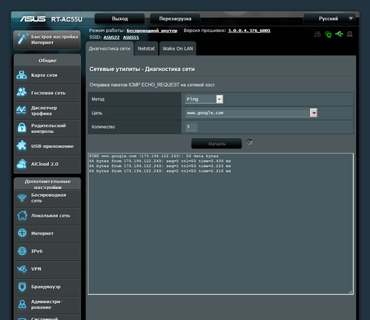 В случае необходимости для диагностики работы сети можно использовать встроенные утилиты ping, traceroute, nslookup и netstat. В некоторых случаях пригодится возможность «пробуждения» клиентов по WOL прямо из интерфейса роутера.