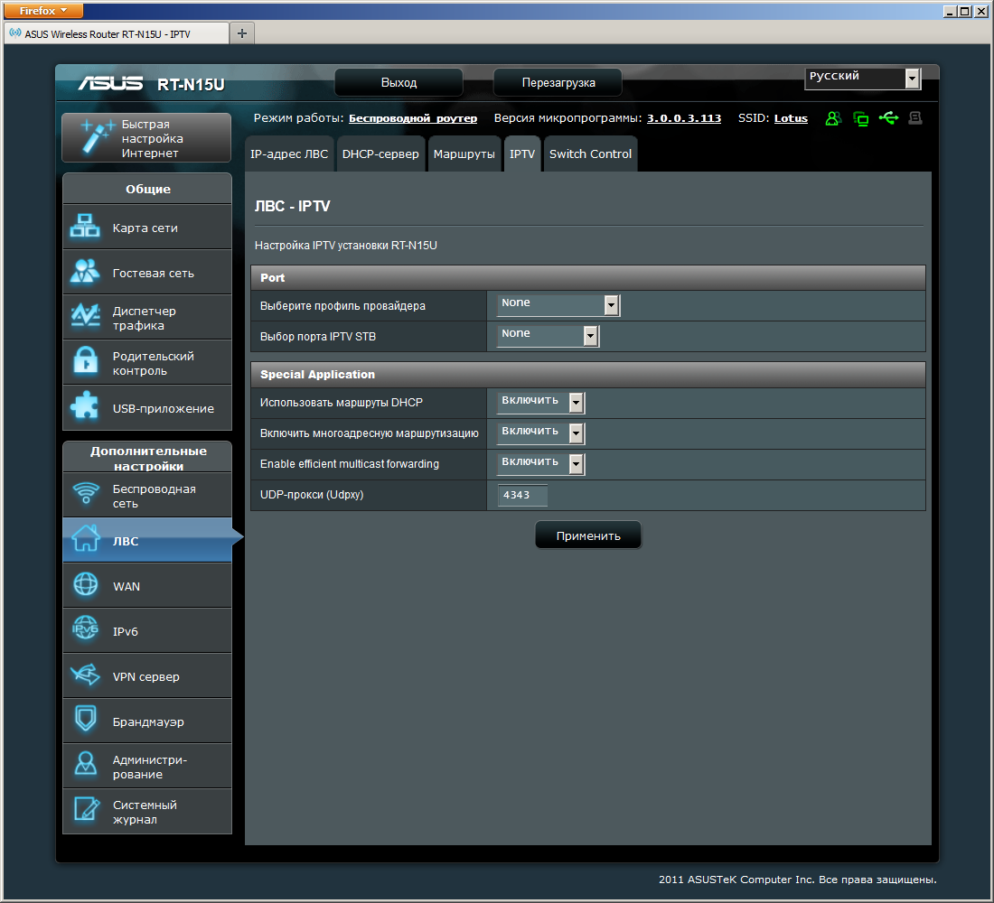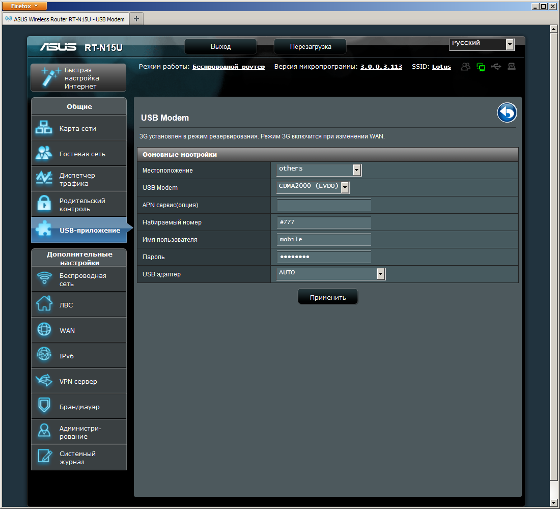 Устройство тестировалось с предоставленной производителем прошивкой версии 3.0.0.3.113.