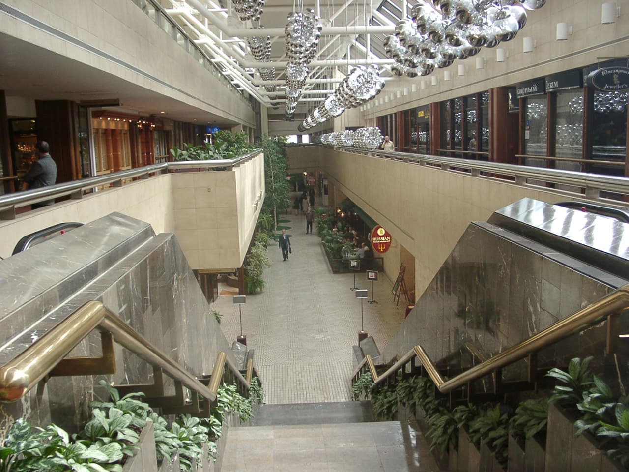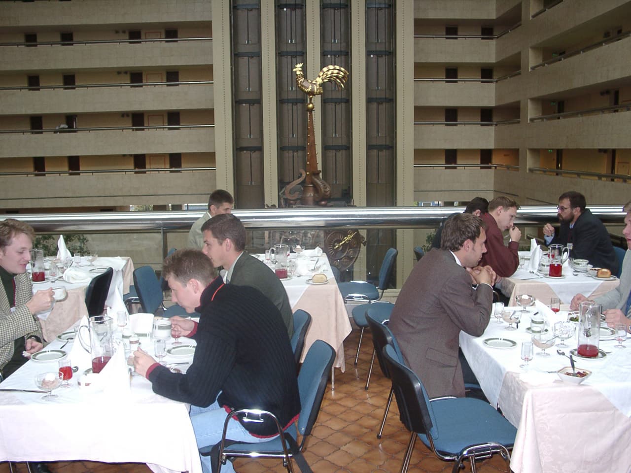А вот в Европейском (прям и название подобрали не российское) все было отлично — включая замечательный вид. Может, именно поэтому на входе был жесткий фейс-контроль. Точнее даже не фейс, а колор — посетители автоматически распределялись по ресторанам, исходя из цветной полоски рядом с их фамилией на карточке посетителя.