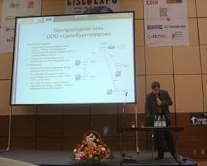 В конце сессии выступил Писарев Юрий из Diamond Communications и показал наглядный пример использования беспроводных технологий на беспроводной сети в OOO “Оренбурггазпром”.