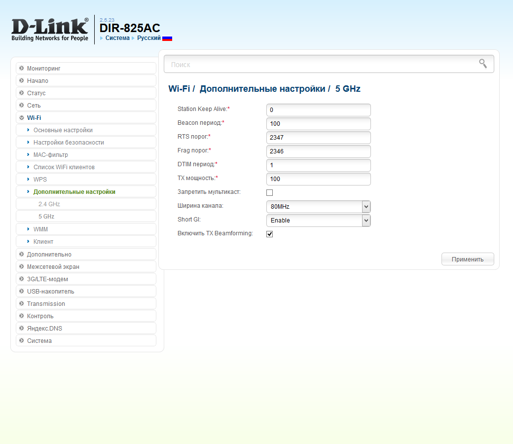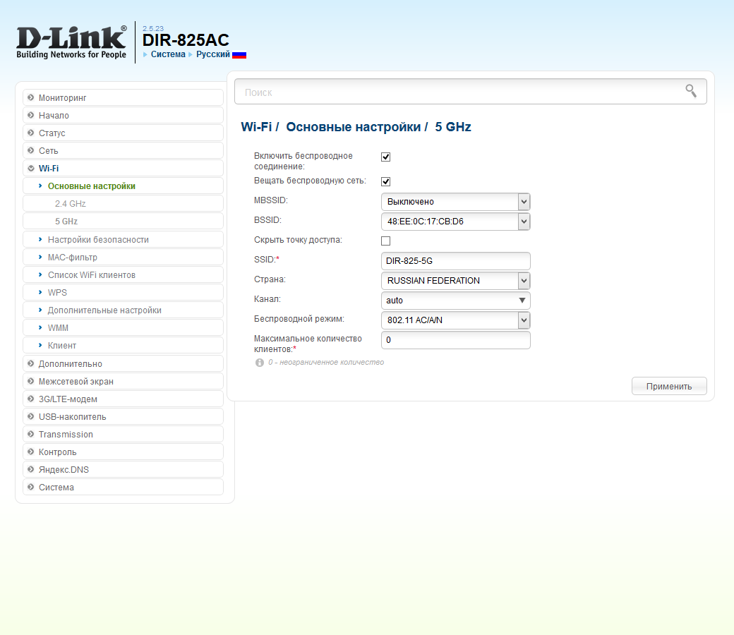Дополнительно можно ограничить число подключаемых клиентов, составить белый или черный список их MAC-адресов, ограничить мощность передатчиков, включить короткий защитный интервал, запретить трансляцию мультикаст потоков, включить WPS.
