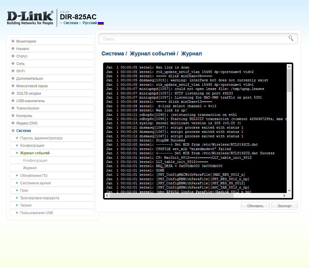Системные события могут храниться как в локальном журнале, так и отправляться на сервер Syslog. Предусмотрен выбор уровня записываемых данных, но пользоваться журналом все-таки не очень удобно.