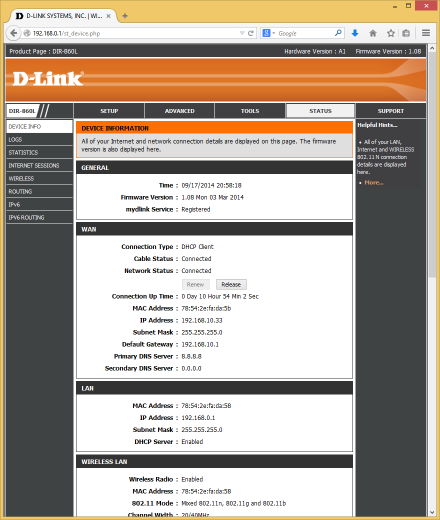 Тестирование роутера проводилось с прошивкой версии 1.08. Аппаратная версия представленного на тест устройства — A1.