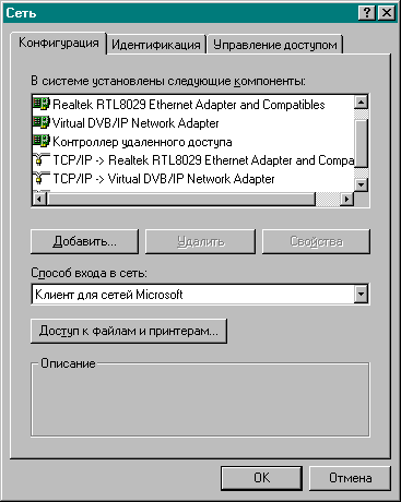 Рис. 3 Конфигурация Virtual DVB/IP Network Adapter в сетевом окружении (свойства)