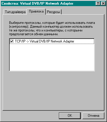 Рис. 4 Привязка TCP/IP к Virtual DVB/IP Network Adapter