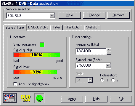 В этой части статьи мы подробно рассмотрим, как произвести установку и настройку программного обеспечения для наиболее популярной на данный момент карты стандарта DVB SkyStar1 на примере спутникового провайдера EuropeOnline Networks (EON). Эта карта разработана фирмой TechniSat Data Services S.A. (Люксембург). Производство карты осуществляется фирмой TechniSat (Германия).