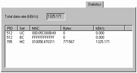 Показывает суммарную скорость передачи данных для всех активных PID-фильтров.