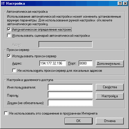Рис. 11 Настройка работы с прокси-сервером EON для Dial-Up соединения