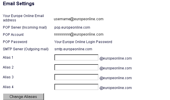 - Сообщите всем, кого сочтете нужным, свой адрес "username@europeonline.com" (*);