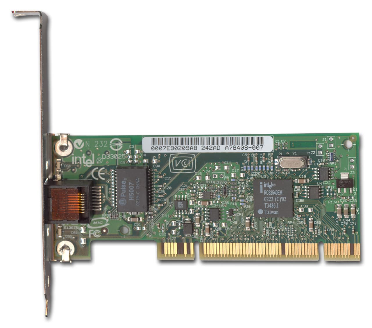 Повторю некоторую информацию о ней. Это одночиповое решение, собранное на микроконтроллере Intel 82540EPВр. Карта имеет два светодиодных индикатора, один из которых показывает наличие линка и передачи данных, а второй (двухцветный) — скорость работы 10/100/1000 Мбит. Некоторые параметры микроконтроллера: