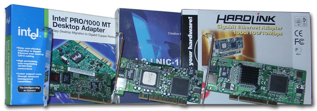 В обзоре мы рассмотрим три карты стандарта gigabit Ethernet (все они являются «Desktop» (не серверными) версиями). Все были протестированы на шине PCI 33 Мгц.