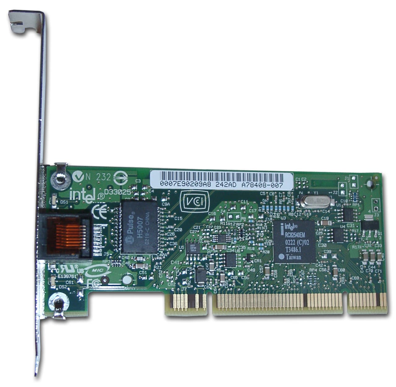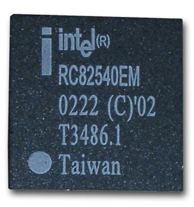 Это уже одночиповое решение (более новое поколение), собранное на микроконтроллере Intel 82540EPВ, который выполняет функции обоих чипов вышеописанных карт. Карта имеет два светодиодных индикатора, один из которых показывает наличие линка и передачи данных, а второй (двухцветный) — скорость работа 10/100/1000 Мбит. Некоторые параметры микроконтроллера: