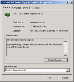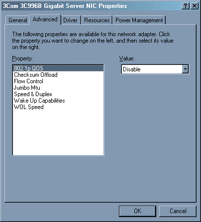 Для установки сетевого адаптера в ОС Windows 2000 использовалась последняя версия драйвера, скачанная с сайта производителя. Номер версии — 5.01.24. В драйвере присутствуют богатые возможности настройки и тюнинга карты, а размер Jumbo Frame можно задавать вручную с шагом 1, насколько большой размер можно выставить, не выяснялось. Но с размером фрейма 16128, являвшимся максимальным в тестах, адаптер работал без нареканий.
