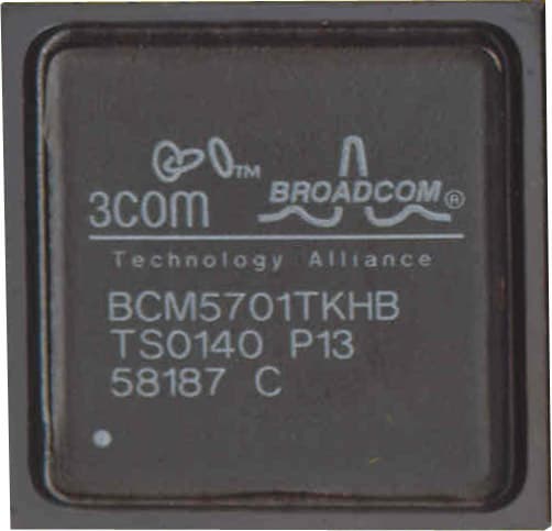 Адаптер тоже одночиповый, в качестве микроконтроллера используется BCM5701 от Broadcom Corporation. Контроллер создан по 0,18-микронной CMOS-технологии и в него интегрирован трансивер физического уровня.