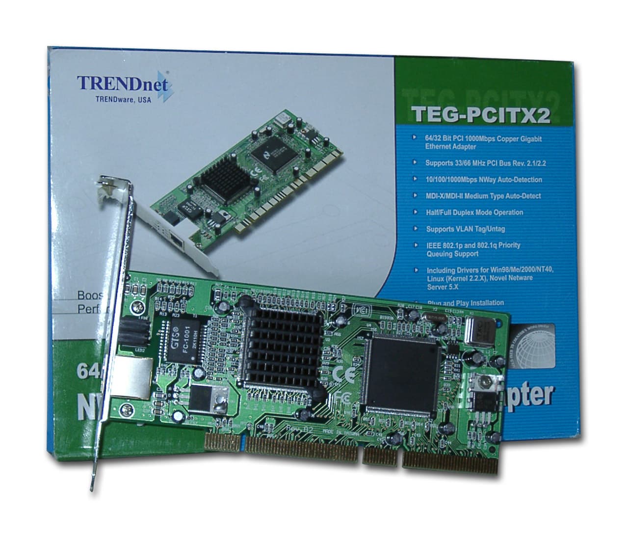 Первая плата на вышеперечисленной логике — TRENDnet TEG-PCITX2 от компании TRENDware.