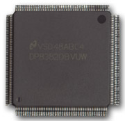 Второй чип — DP83861VQM-3 — это трансивер физического уровня. На большинстве адаптеров на него установлен радиатор, так как трансиверы ощутимо греются. При смене карты сразу после выключения компьютера, чип (если он без радиатора) или сам радиатор на ощупь практически обжигающие. Трансивер может работать на скоростях 10/100/1000 Мбит/сек в режимах полу- и полного дуплекса. Поддерживает режим автосогласования скоростей и режимов из вышеназванного списка (IEEE 802.3u Auto-Negotiation).