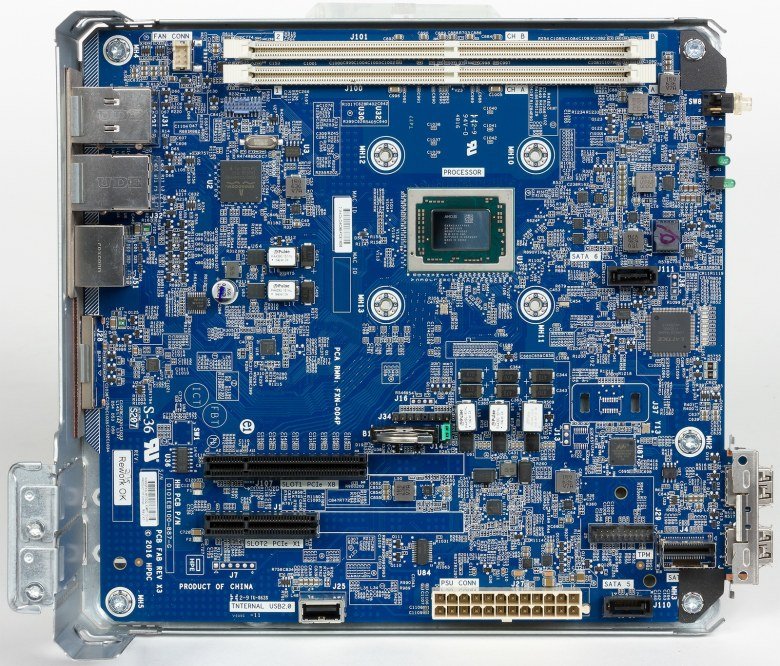 Для HP ProLiant MicroServer Gen10 заявлена возможность использования всех трех моделей процессоров данной серии — X3216, X3418 и X3421. Младшая имеет два ядра с частотами работы до 3 ГГц, а старшая — четыре ядра с максимальной частотой 3,4 ГГц (базовая частота составляет 2,1 ГГц). Процессор припаян на материнскую плату и заменить его пользователь сам не сможет. На процессоре закреплен относительно крупный радиатор из алюминия.