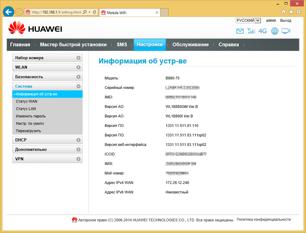 Роутеры Huawei редко используются с альтернативными версиями прошивок. Кроме того, данная модель относительно сложная с технической точки зрения. Так что аппаратная конфигурация в данном случае не очень важна. Отметим использование двух встроенных антенн для Wi-Fi и наличие на печатной плате микроразъемов для возможной установки альтернативных вариантов. Вся электронная начинка закрыта экранами, но каких-либо заметных радиаторов в устройстве нет. Нагрев корпуса во время работы практически не заметен. Присутствует служебный разъем Mini-USB, который, скорее всего, может быть использован в сервис-центре для обновления прошивки модема.