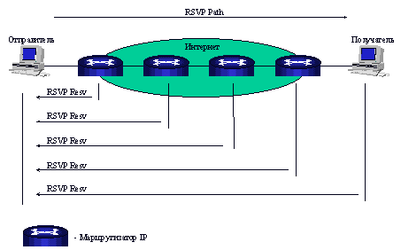 Транзитные маршрутизаторы по мере прохождения этого сообщения также анализируют имеющееся у них количество свободных ресурсов и подтверждают его соответствующим сообщением RSVP Resv, передаваемым в обратном направлении. Если ресурсов достаточно, то отправитель начинает передачу. Если ресурсов не достаточно, получатель должен снизить требования или прекратить передачу информации.