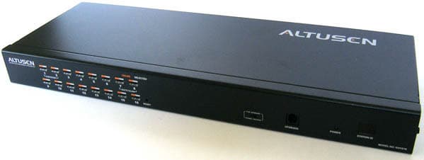 KVM ALTUSEN KH1516 — шестнадцатипортовый переключатель консоли, предназначенный для использования с клавиатурой и мышью, с PS/2 подключением и монитором с интерфейсом VGA. Поддерживаются ПК с интерфейсом PS/2 и USB, в том числе новые Sun, а также старые Sun и устройства с управлением через ASCII терминал, совместимый с VT100. Подключение осуществляется отдельными для каждого интерфейса клиентскими модулями, соединяемыми с KVM витой парой пятой категории. В ассортименте предложений компании имеется аналогичный KVM на восемь системных блоков. Кроме того, есть разновидности обеих моделей со встроенной поддержкой доступа к консоли по IP-сетям. Возможно объединение в цепочку до 31 устройства. Подробнее.